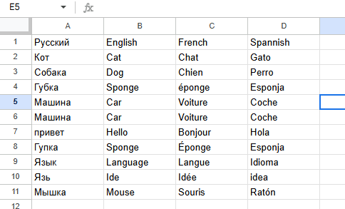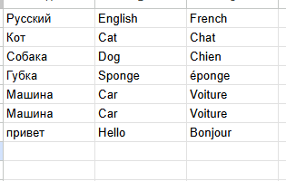 // Переводить необходимо текст, введённый только в первую колонку.