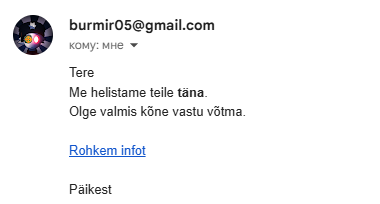 - „koju“ (ERROR, peaks olema „homme“ – homme) – „Helistage homme“.