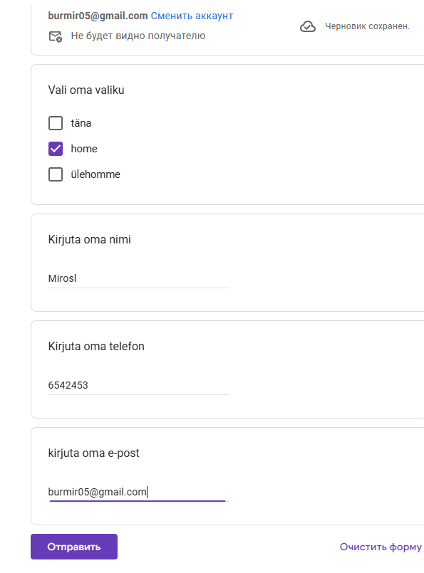 2. GoogleTable salvestab vormisestused